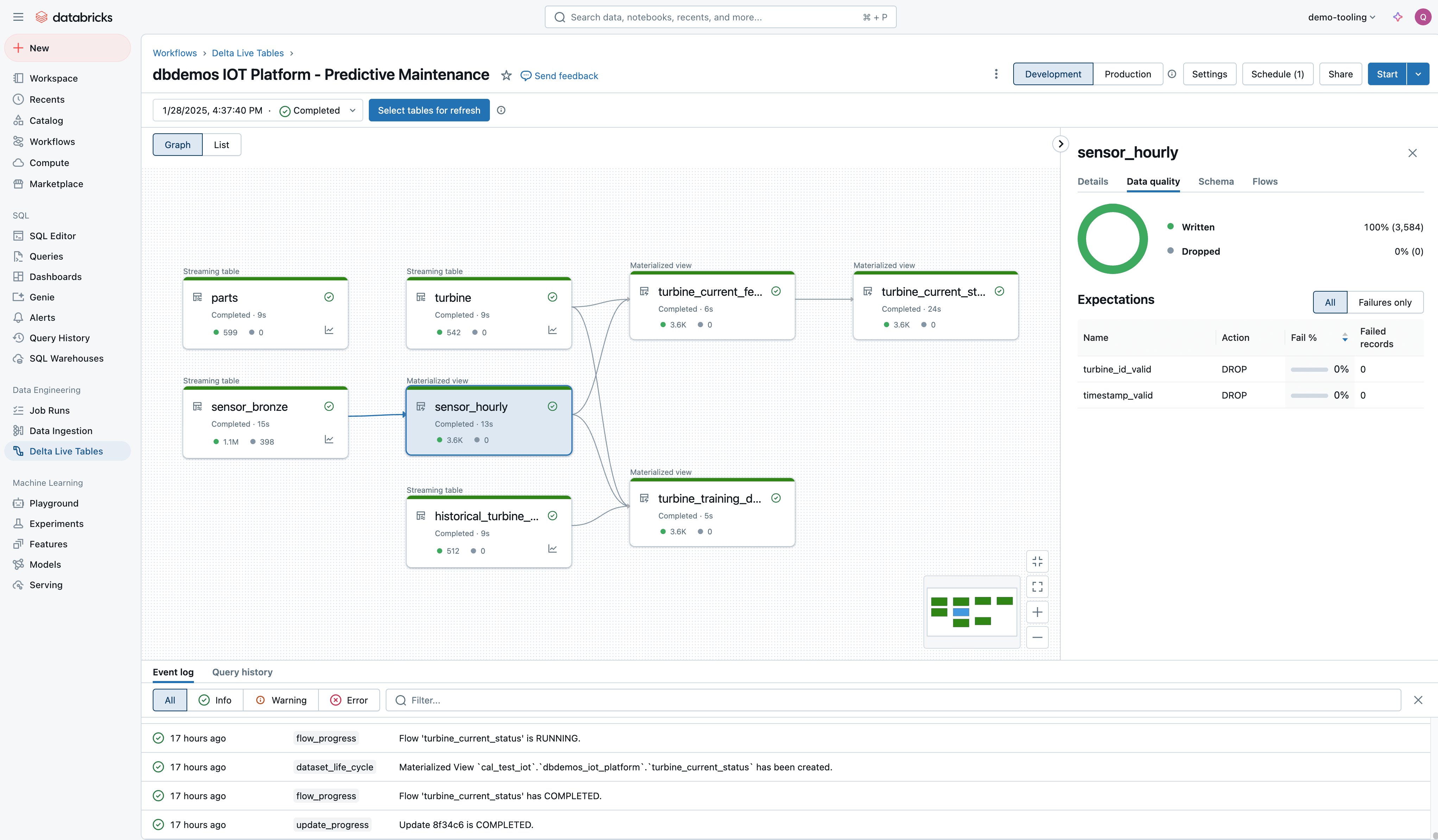 Kuva 3 Demo maintenance harjoituksesta: Databricks Intelligence Platform for IoT: Predictive Maintenance and GenAI Agents | Databricks